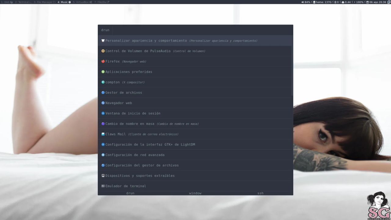 dmenu, pero es mejorROFI. - Para el fondo de pantalla: Yo uso