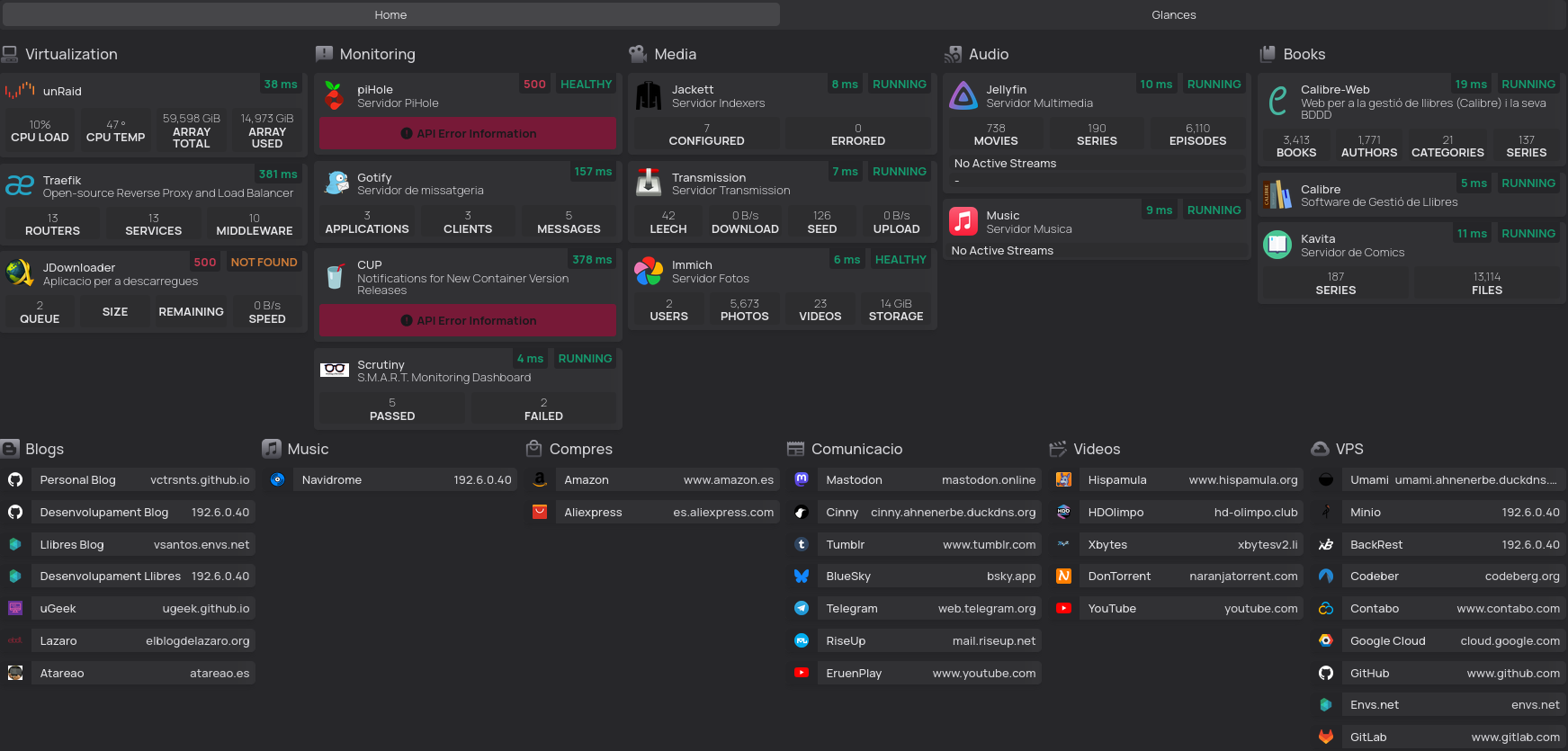 metric: disk:sdaSi os fijais, podreis ver que he usado variables del estilo HOMEPAGE_VAR_CALIBREUSER o HOMEPAGE_VAR_PIHOLE, esto lo usamos, para que el fichero quede los más limpio posible de passwords, keys, etc… que en caso de algun problema queden expuestos.