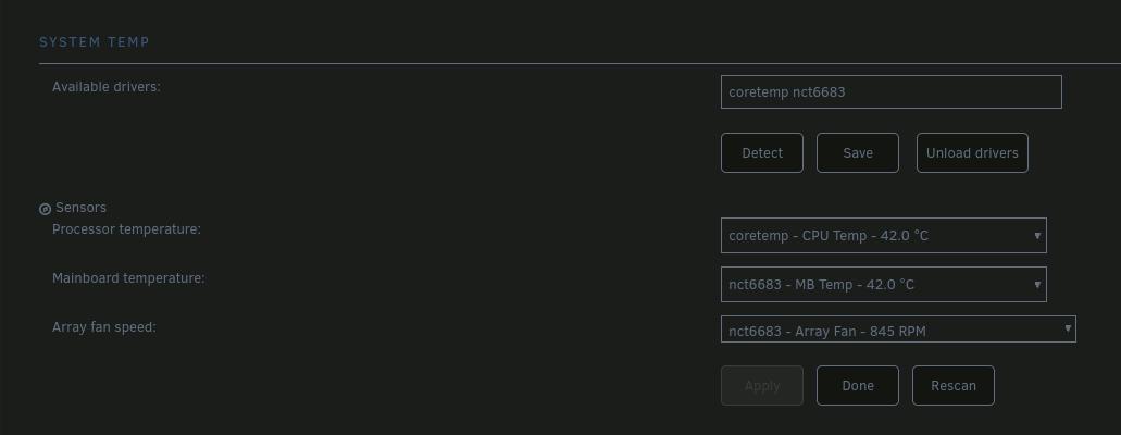 Pues en este caso, de comunes lo tienen todo menos los sensores de control de la temperatura. Además unRAID no ayudaba mucho con ello. Seguramente muchos direis, y por que no instalas el plugin Dynamix System Temperature y problema solucionado.
